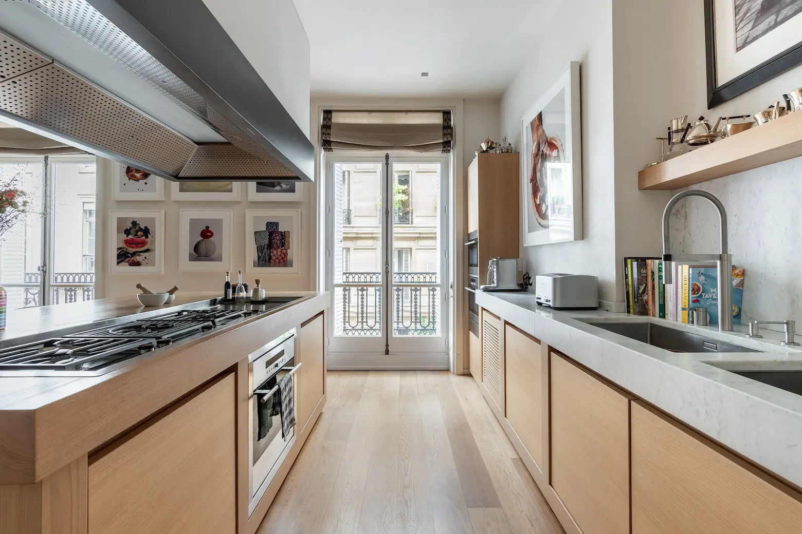 Cette cuisine haut de gamme associe matériaux nobles, design minimaliste et savoir-faire artisanal.