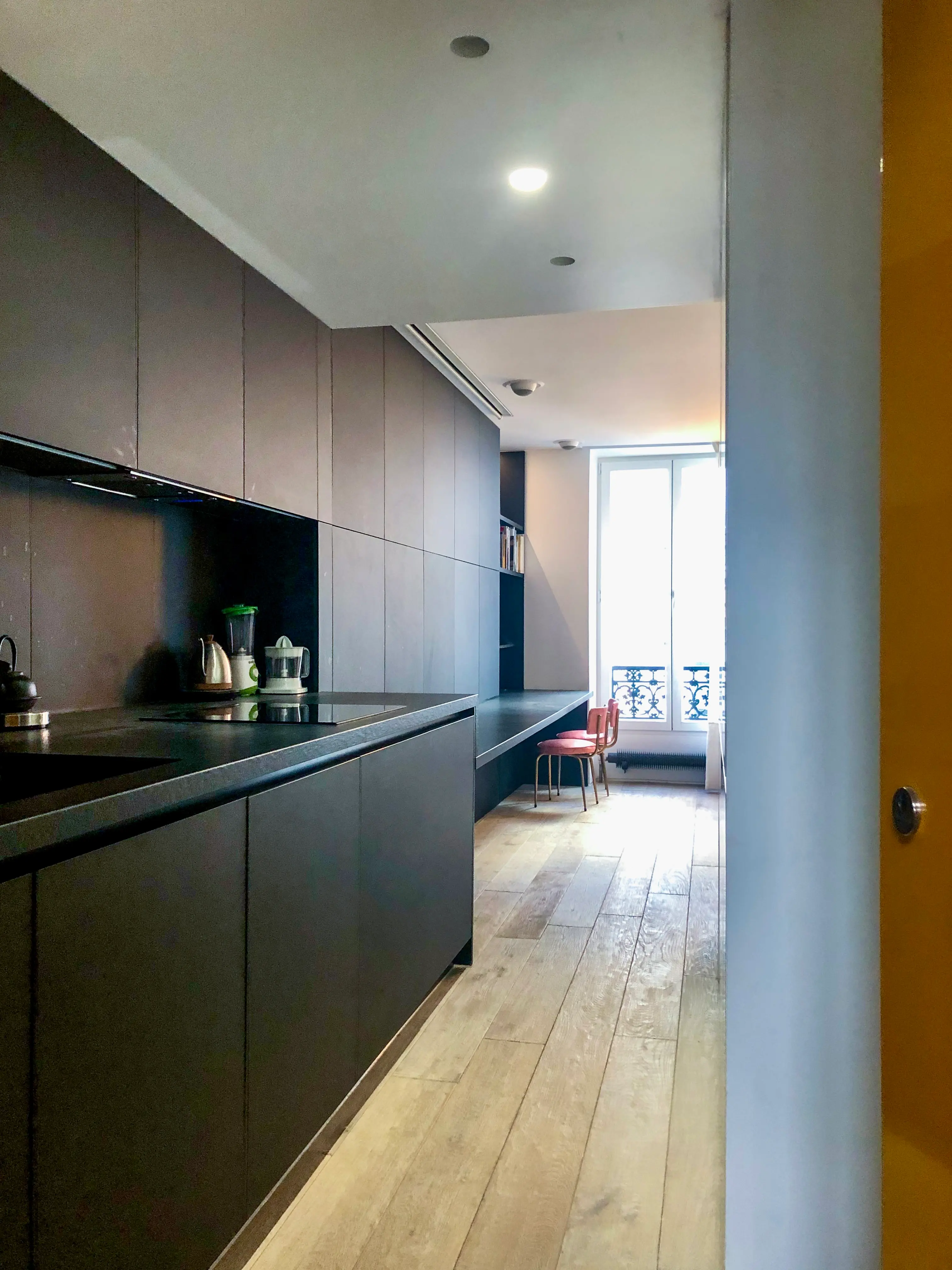Dans le quartier Arts & Métiers à Paris, cet appartement imaginé pour un jeune architecte incarne une vision contemporaine et fonctionnelle de la cuisine haut de gamme sur mesure.