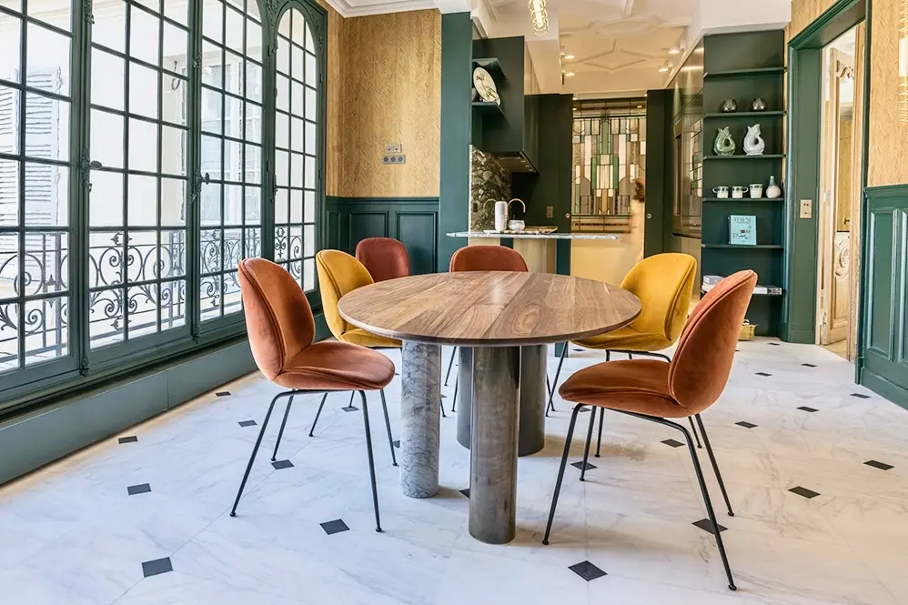 Au cœur de Saint-Sulpice à Paris, cette cuisine haut de gamme affirme une identité forte et singulière, où le design contemporain dialogue avec une inspiration résolument Art Déco.