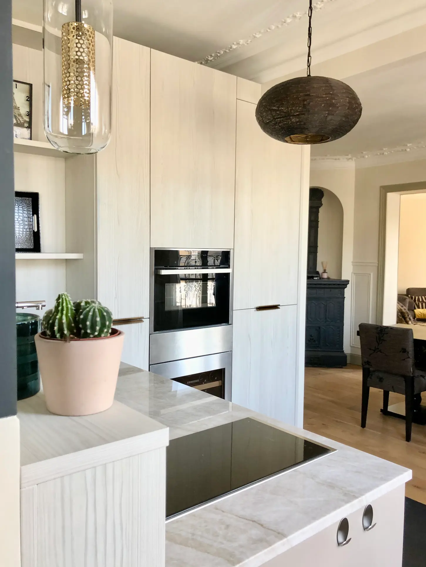 Signée Eggersmann, cette cuisine design allemande se distingue par sa luminosité et sa configuration traversante, offrant une circulation fluide entre les différents espaces de vie. Véritable pièce maîtresse, elle structure l’ensemble du volume avec élégance et cohérence.