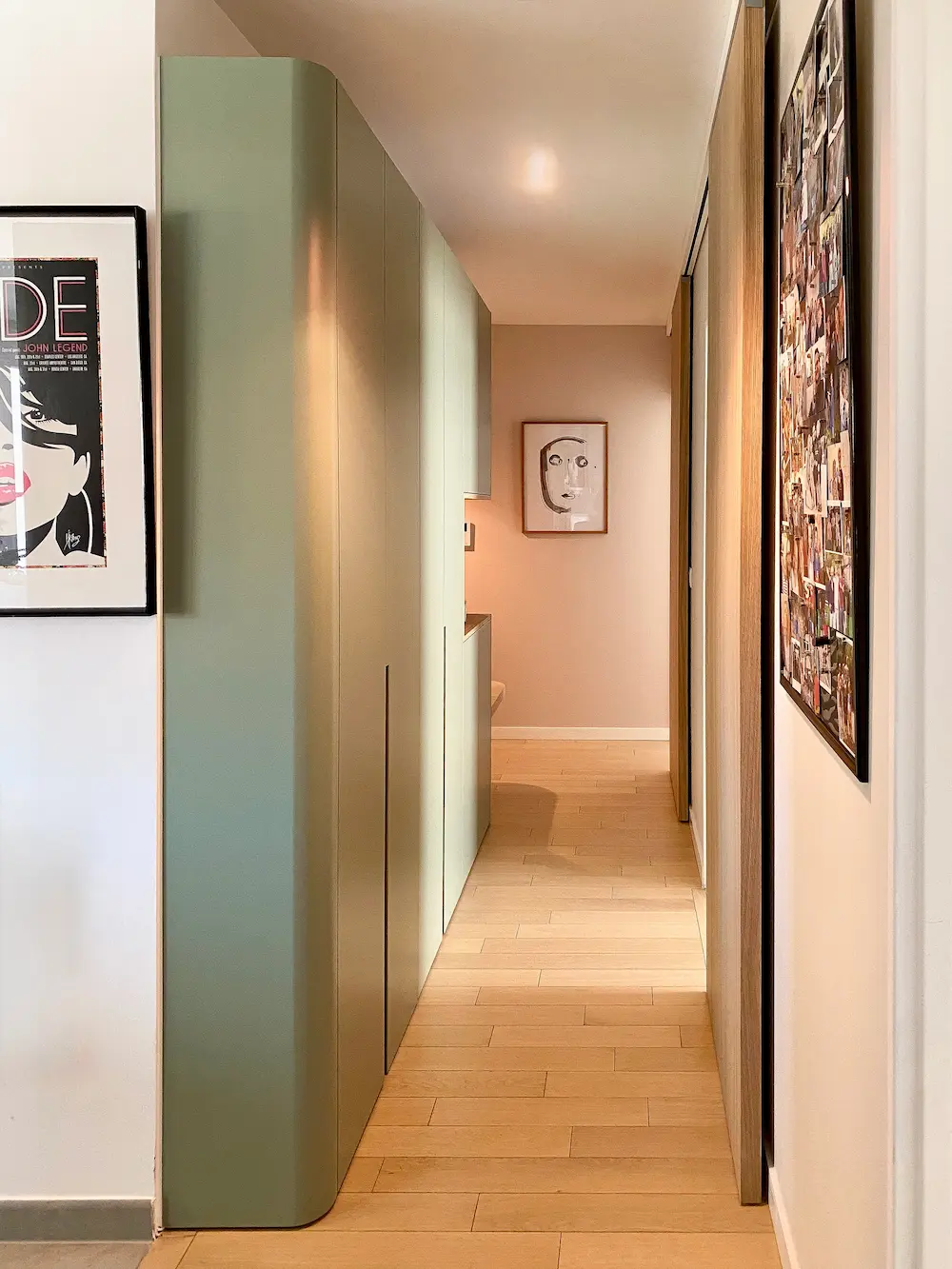 Ainsi, à chaque étape, nous avons façonné un espace à la fois chaleureux et fonctionnel. Par ailleurs, une attention particulière a été portée à l’harmonie avec l’ensemble de l’intérieur. De ce fait, l’aménagement final incarne une parfaite cohérence esthétique. En somme, ce projet conjugue élégance, ergonomie et personnalisation, tout en s’inscrivant avec justesse dans l’esprit du lieu.