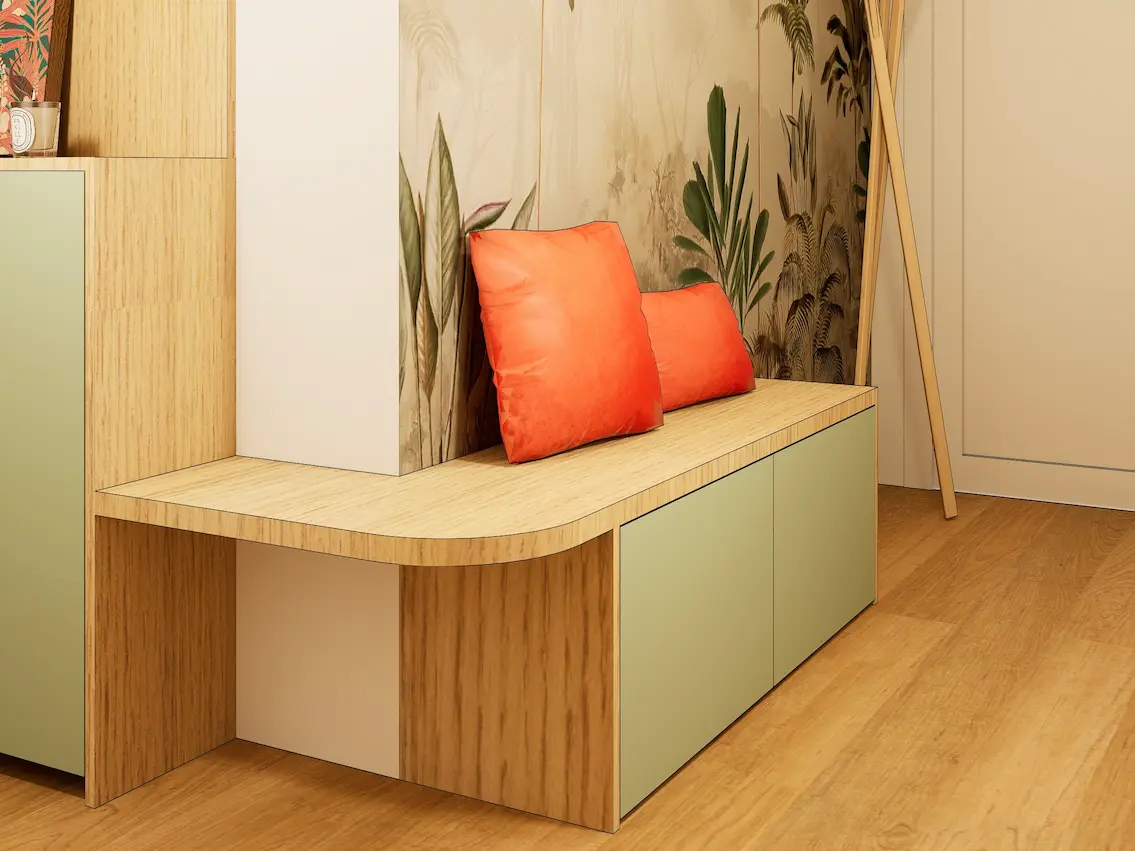 Chez Dimi, agenceur d’espaces de luxe, nous avons donc conçu une entrée sur mesure. Ainsi, elle reflète à la fois raffinement et praticité.
