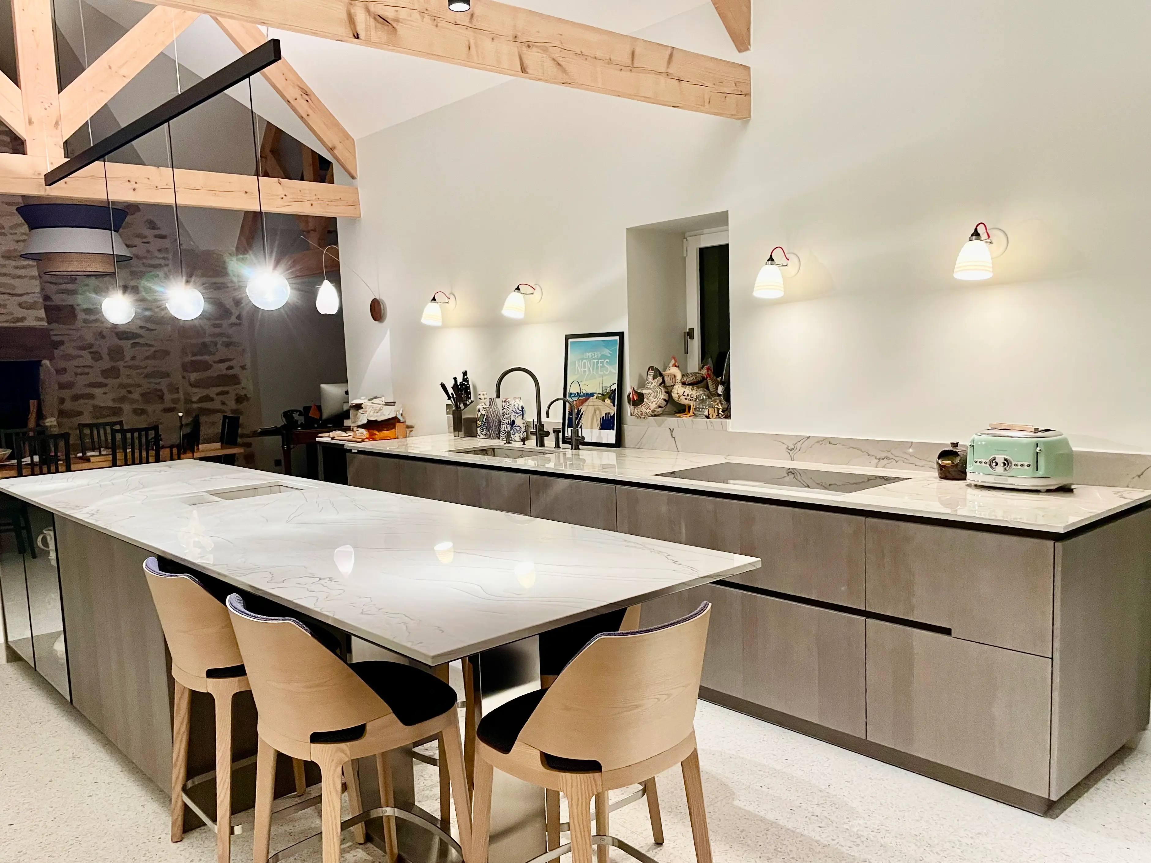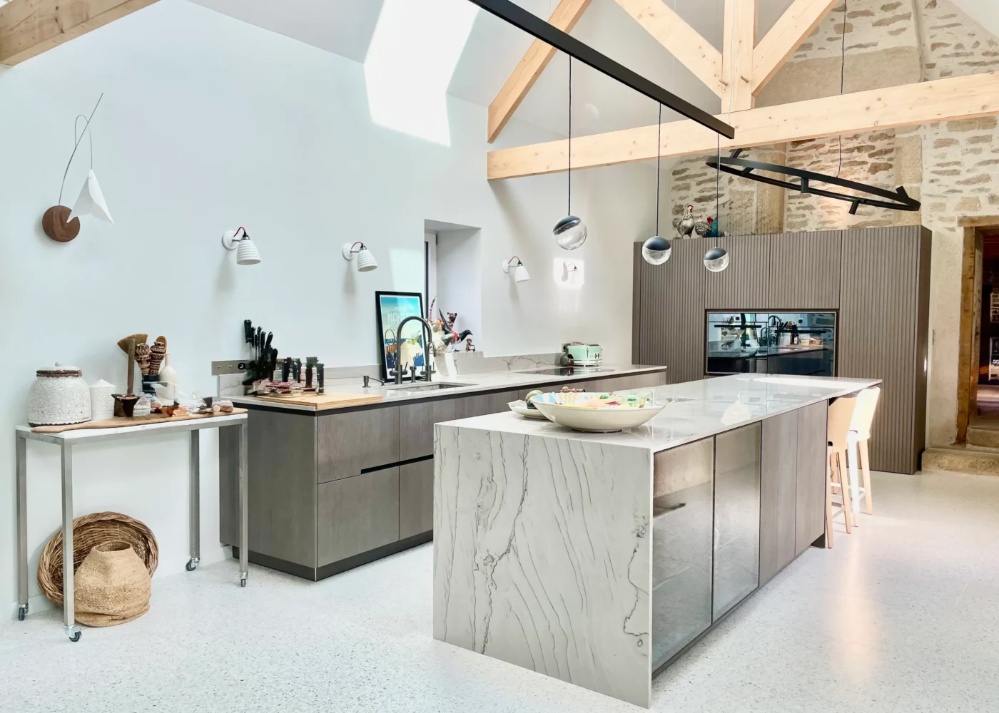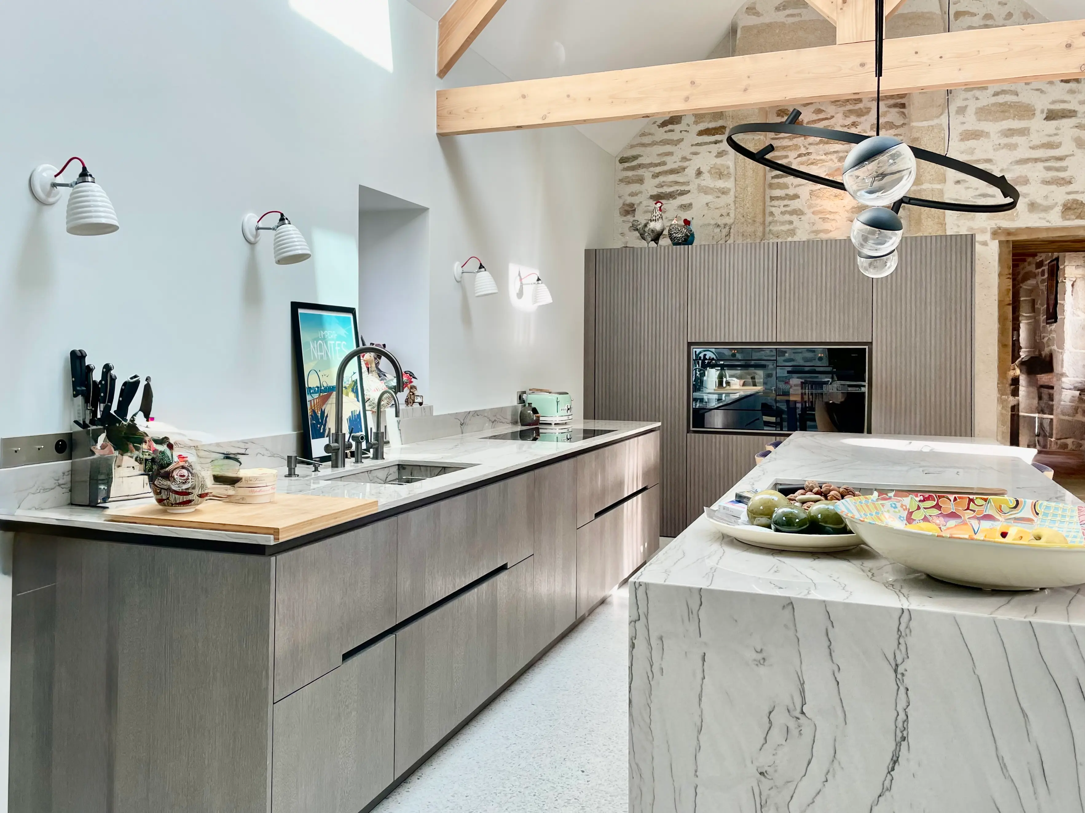 Une cuisine haut de gamme entre matière brute et lignes épurées.
