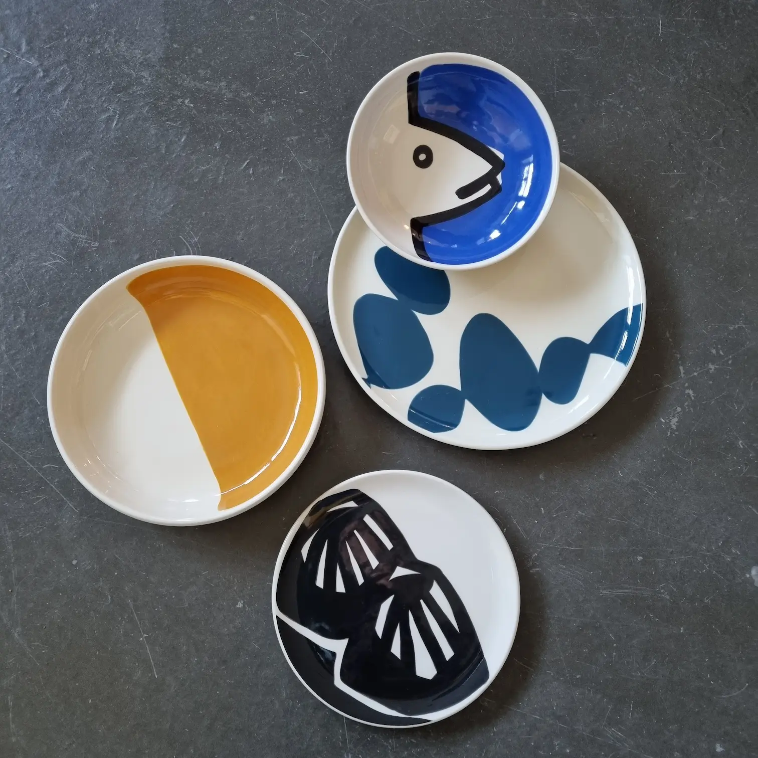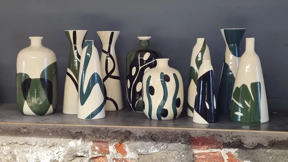 Artiste céramiste, elle développe un travail singulier mêlant création d’objets, pièces décoratives et réalisations murales sur mesure.